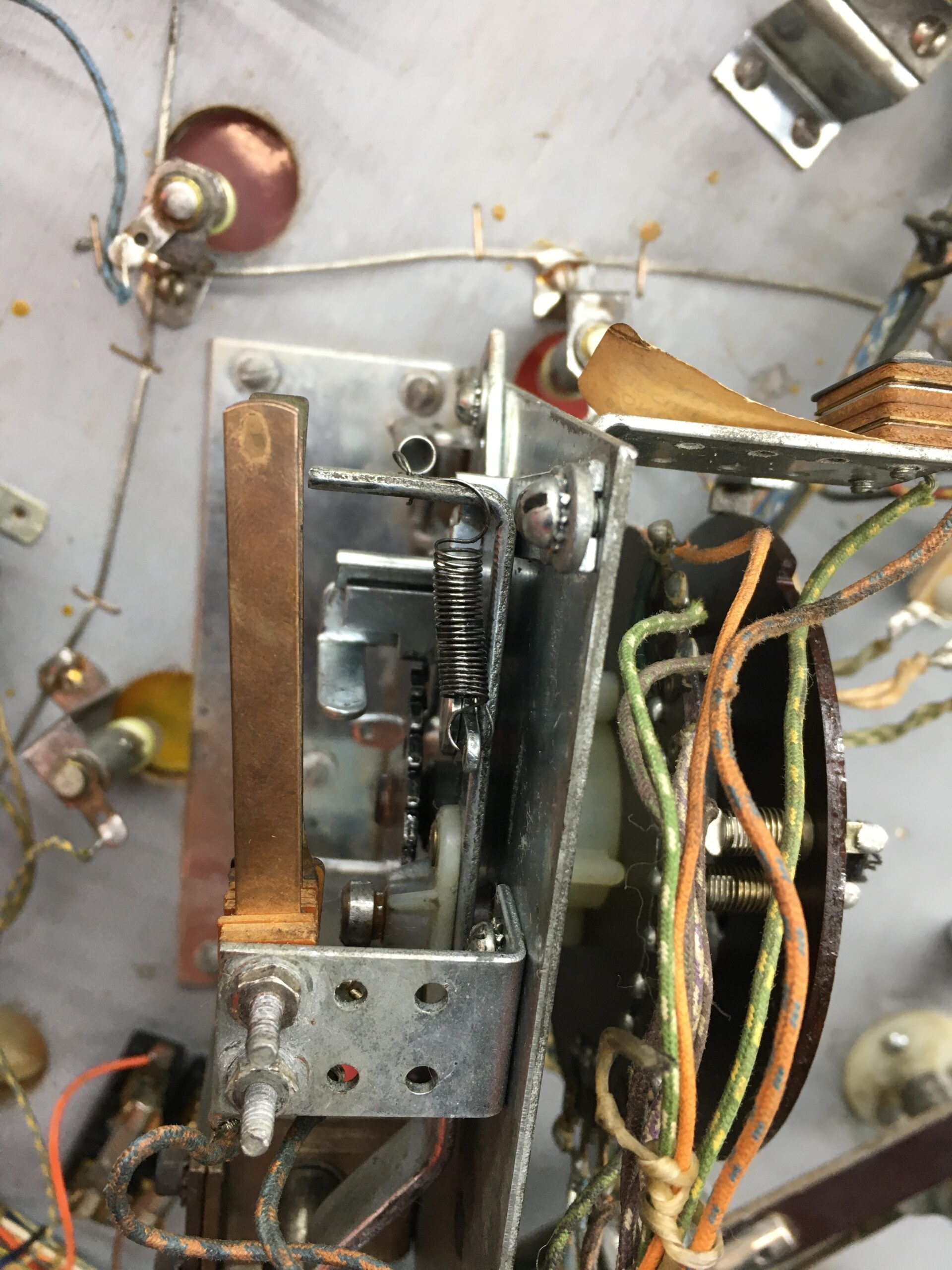 The flipper in the upper right was sometimes not returning i.e. staying in a semi-upright position. The coil wasn’t stuck on. I checked the EOS switch. Adjusted the spring for a bit more snap-back.