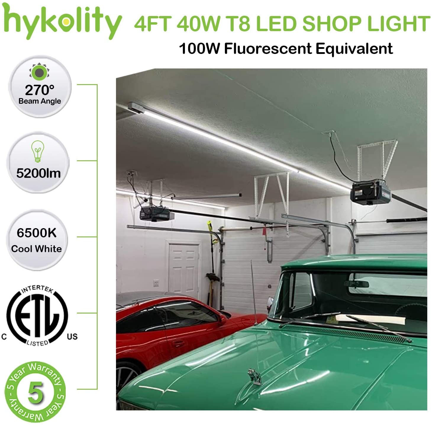 - Up to 75% Energy Saving – Hykolity’s 4ft LED shop lights feature 5200 lumens brightness by using only 40W, equivalent to 3 pcs 32W 4ft fluorescent tube, provides a 75% reduction in energy usage.