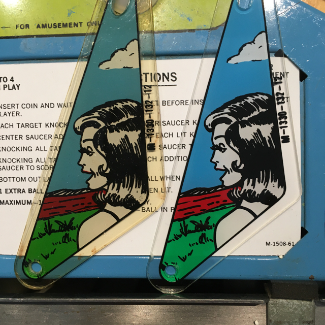 The machine had a layer of dirt/dust on everything but the playfield was in good shape, cabinet so-so, backglass flaky and cracked – only 38,000 plays.